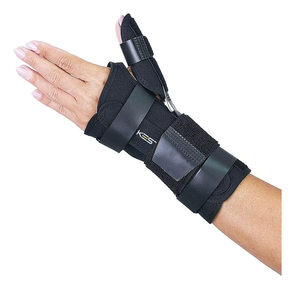 O produto possui 3 talas que oferecem imobilização para o punho e polegar. O elástico proporciona compressão que é ajustável conforme a necessidade e as tiras oferecem maior firmeza e segurança articular.